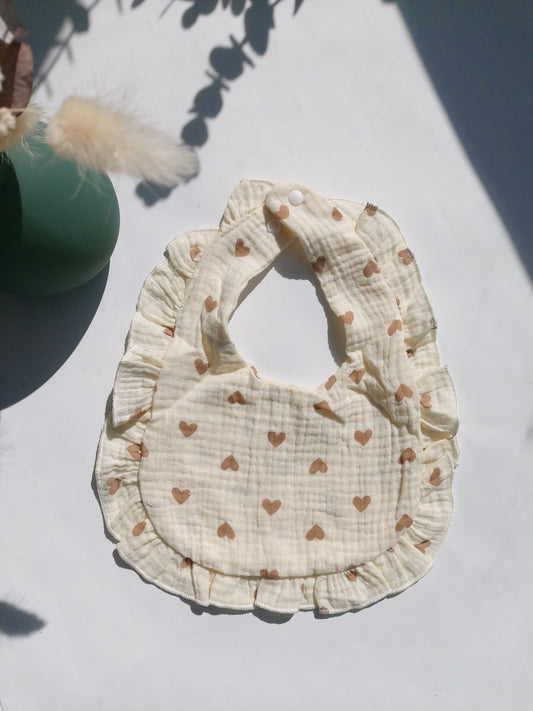Bavoir à volants - Coeurs marron