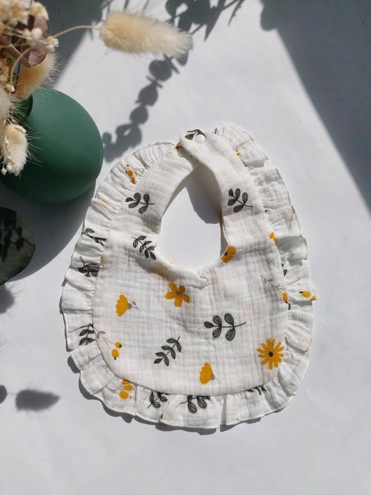 Bavoir à volants - Fleurs jaunes