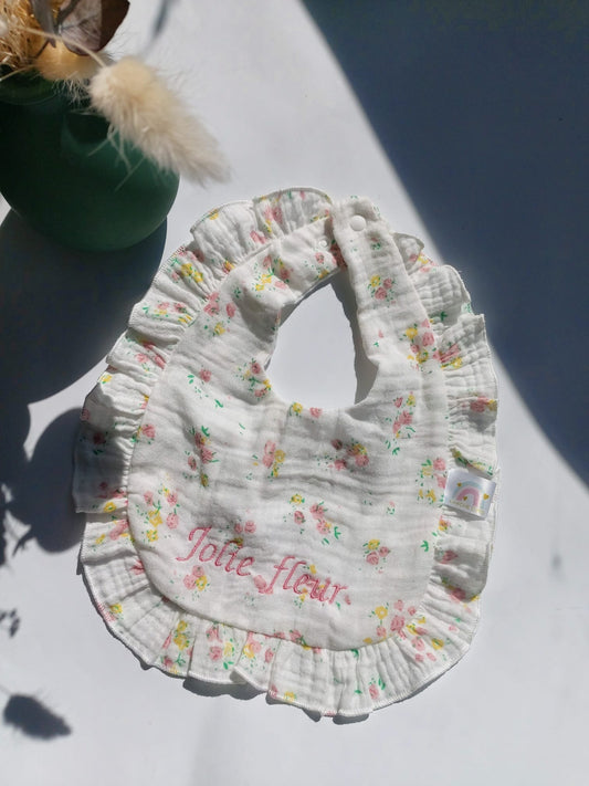 Bavoir à volants - Fleurs roses