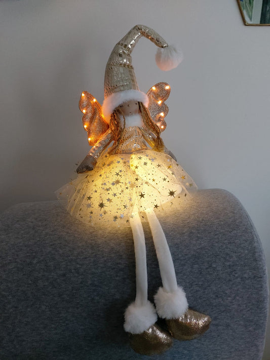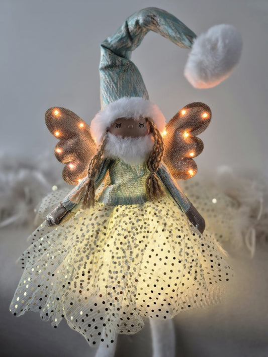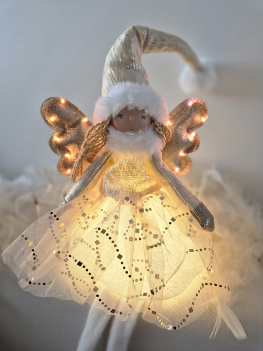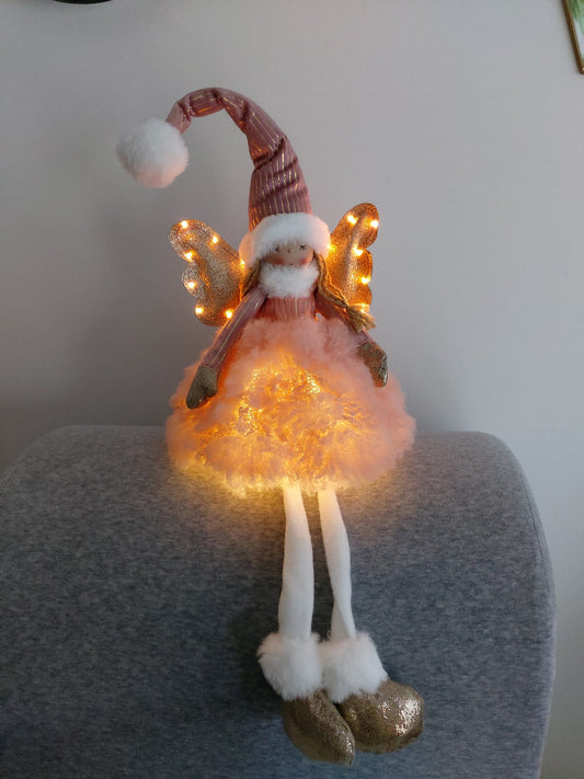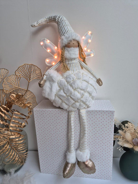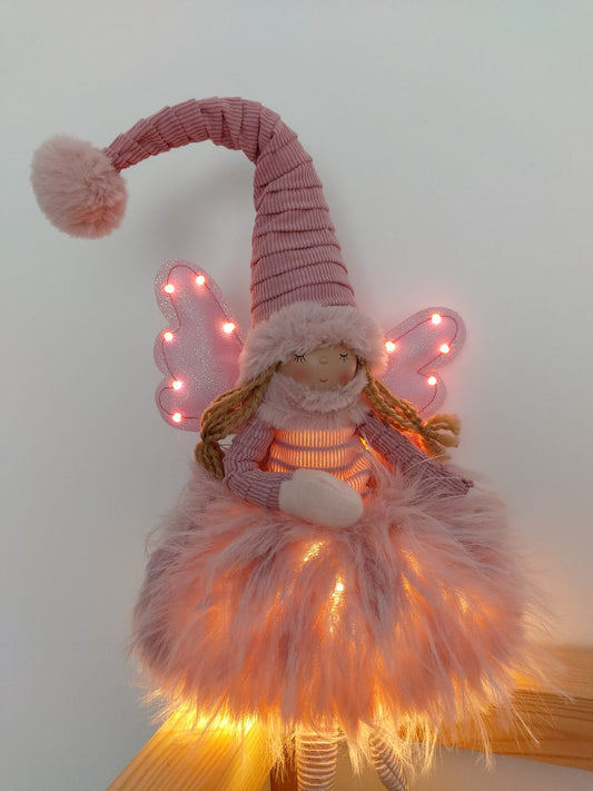 Poupée Jade assise - Rose ailes dorées