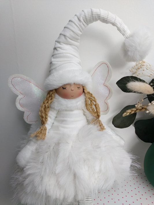 Poupée Jade assise - Blanche fourrure