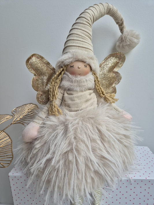 Poupée Jade assise - Beige fourrure