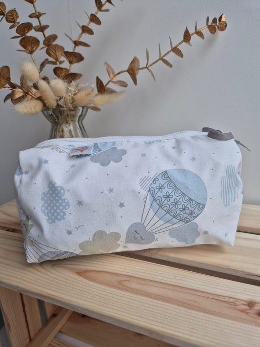 Trousse de toilette - Montgolfières bleu - broderie possible