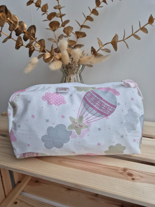 Trousse de toilette - Montgolfières rose (sans broderie)
