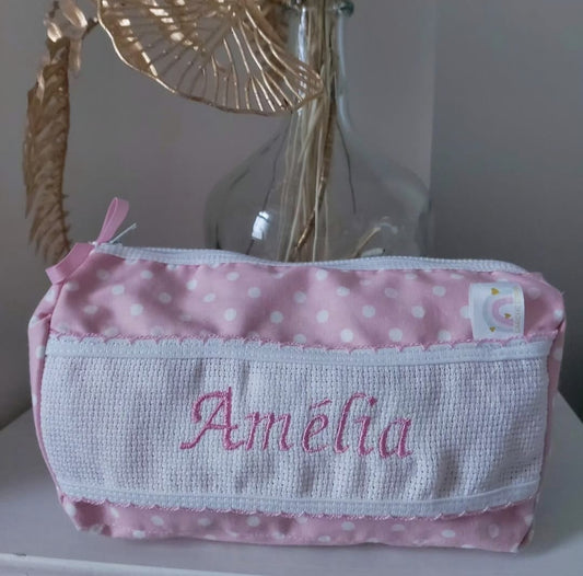 Trousse de toilette - Rose à pois blancs - broderie possible