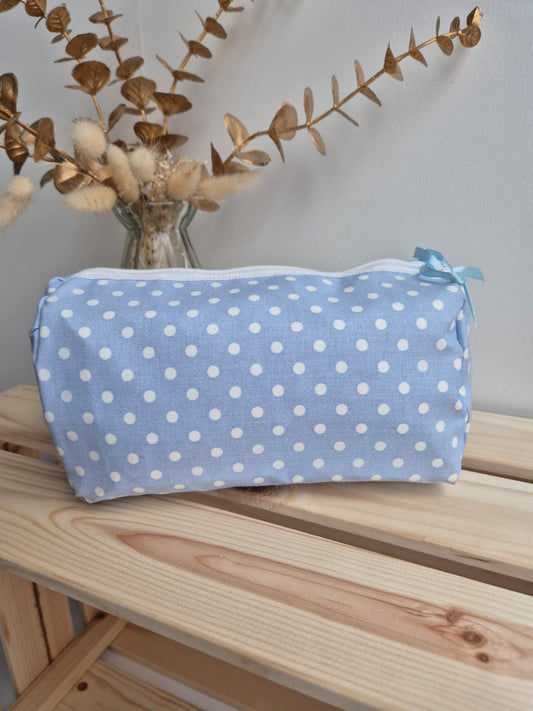 Trousse de toilette - Bleu à pois blancs - broderie possible