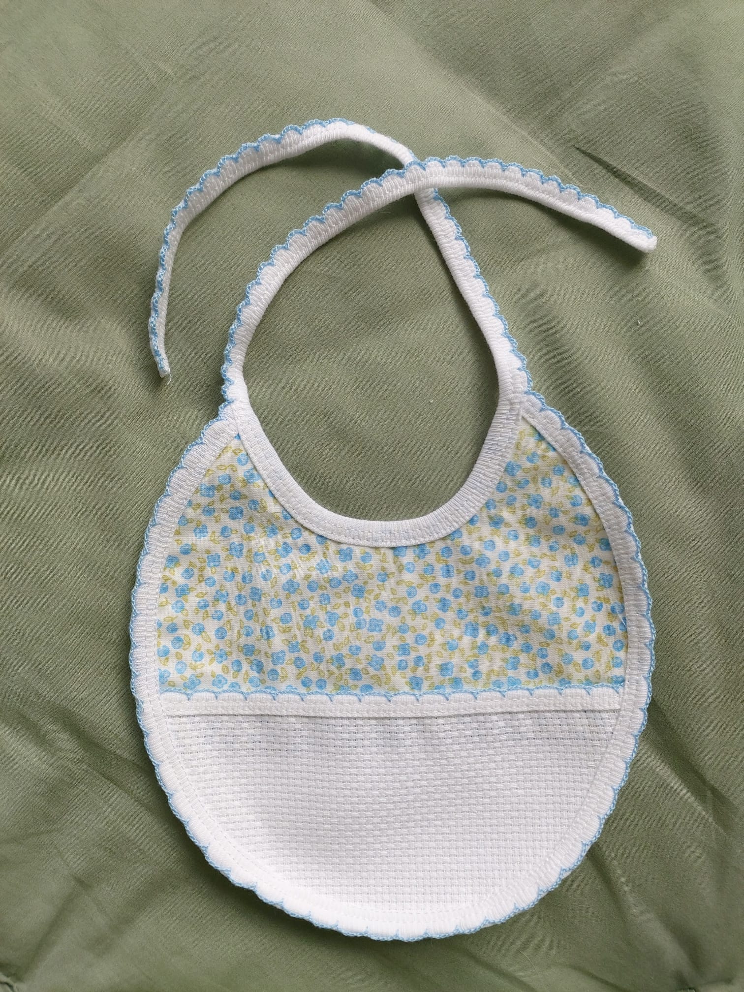 Bavoir rond, mignon et pratique. Il convient pour les repas de bébé dès la naissance et jusque 12 mois environ.