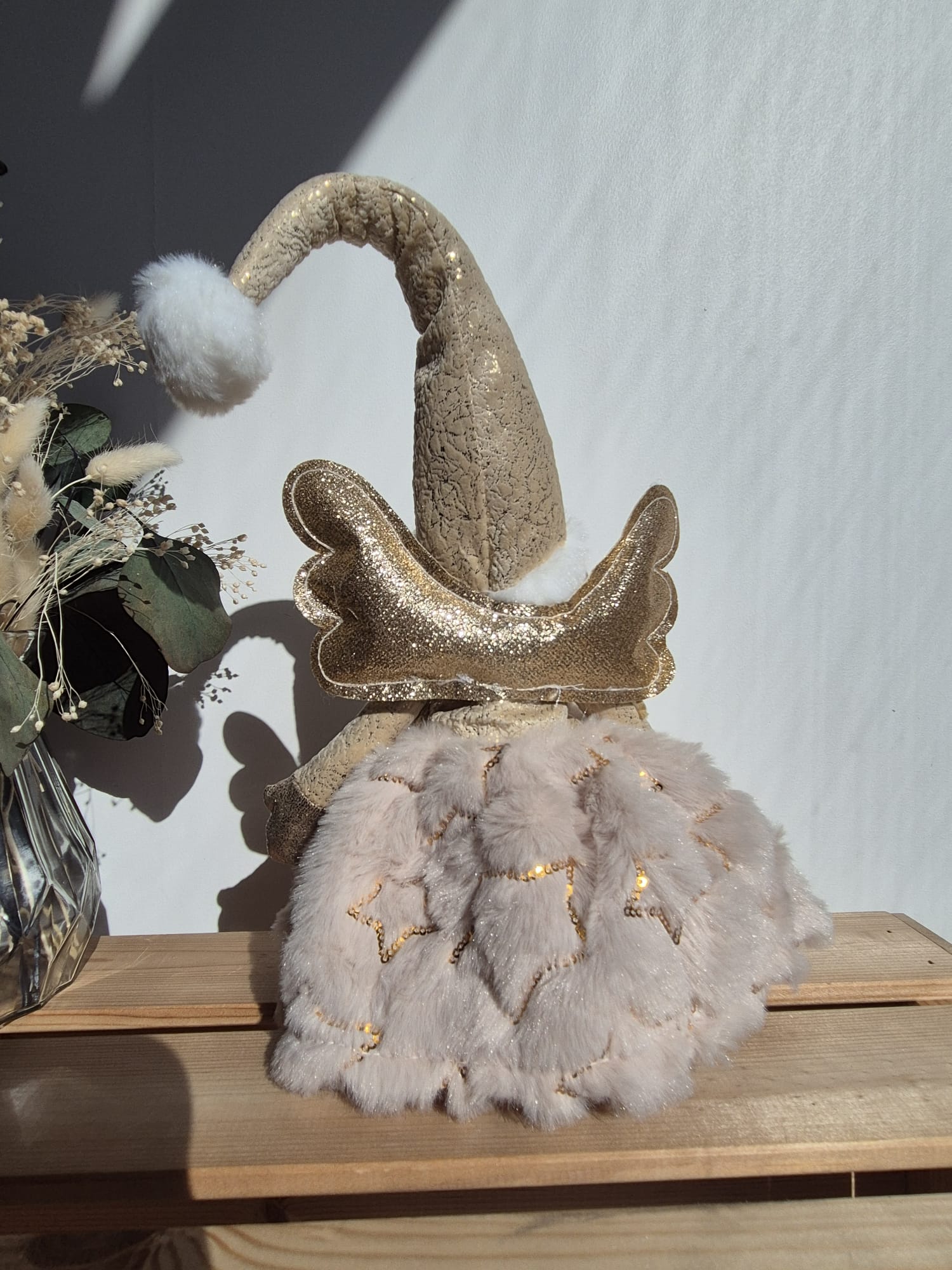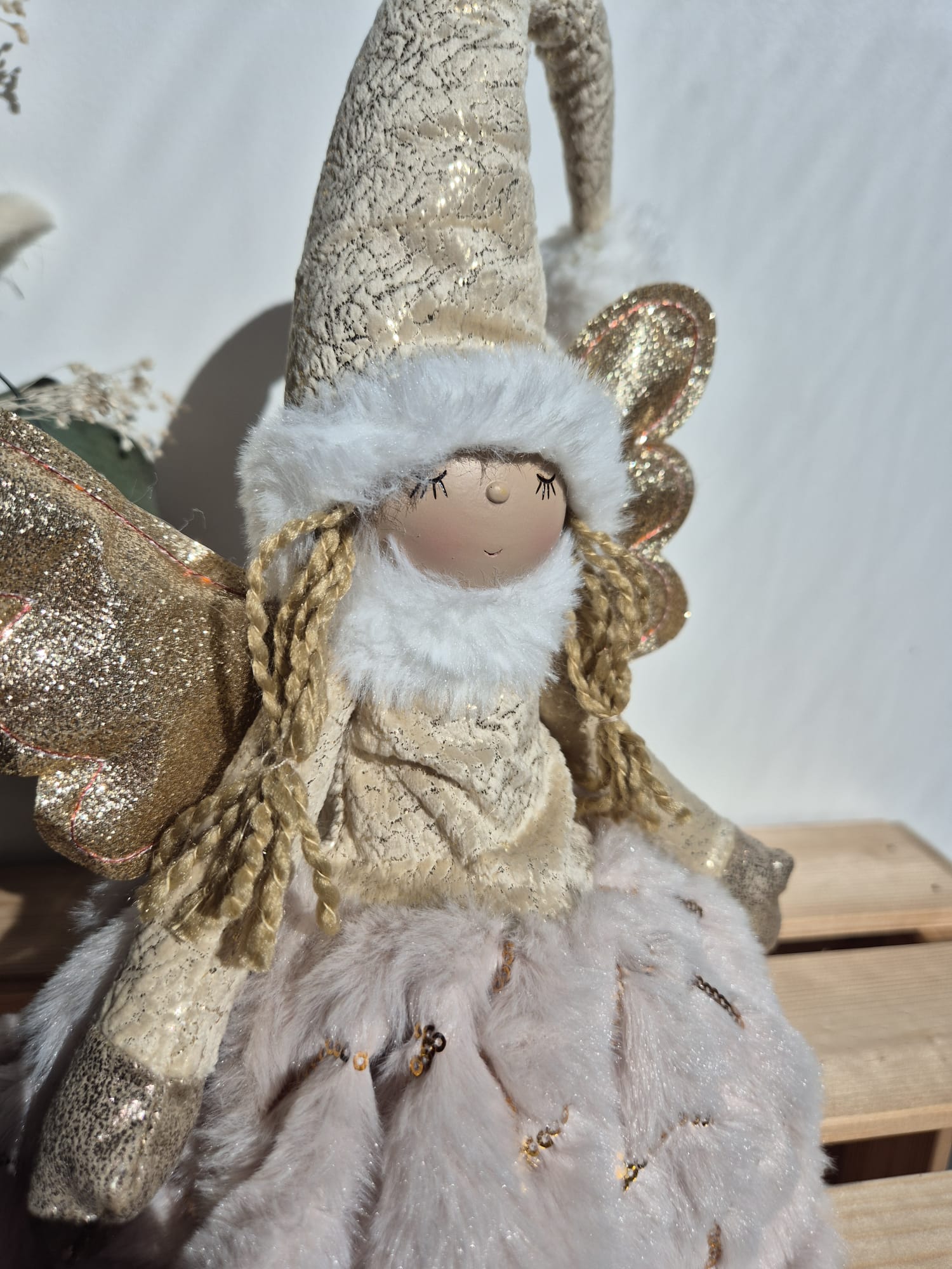 Couleur : Beige velours étoiles et ailes dorées
