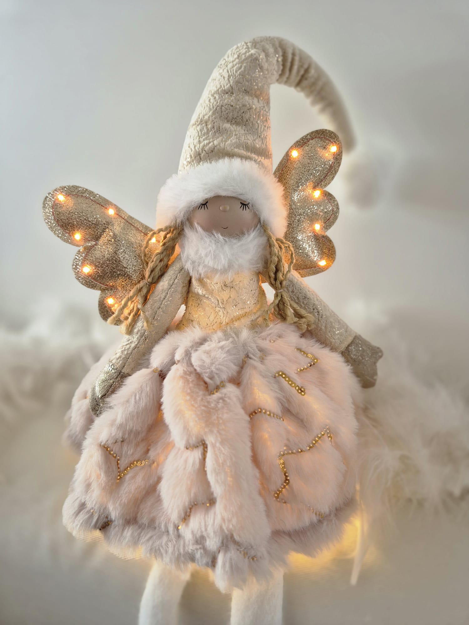 Et ce n'est pas tout, ses ailes sont recouvertes d'un filet lumineux qui pourra également être éclairé pour conférer à la poupée, un maximum de douceur.