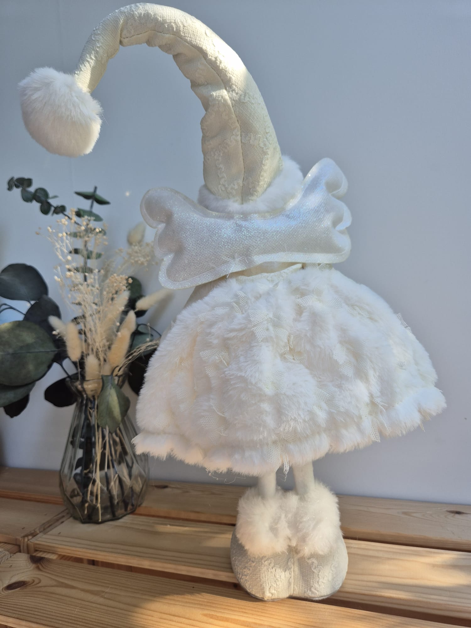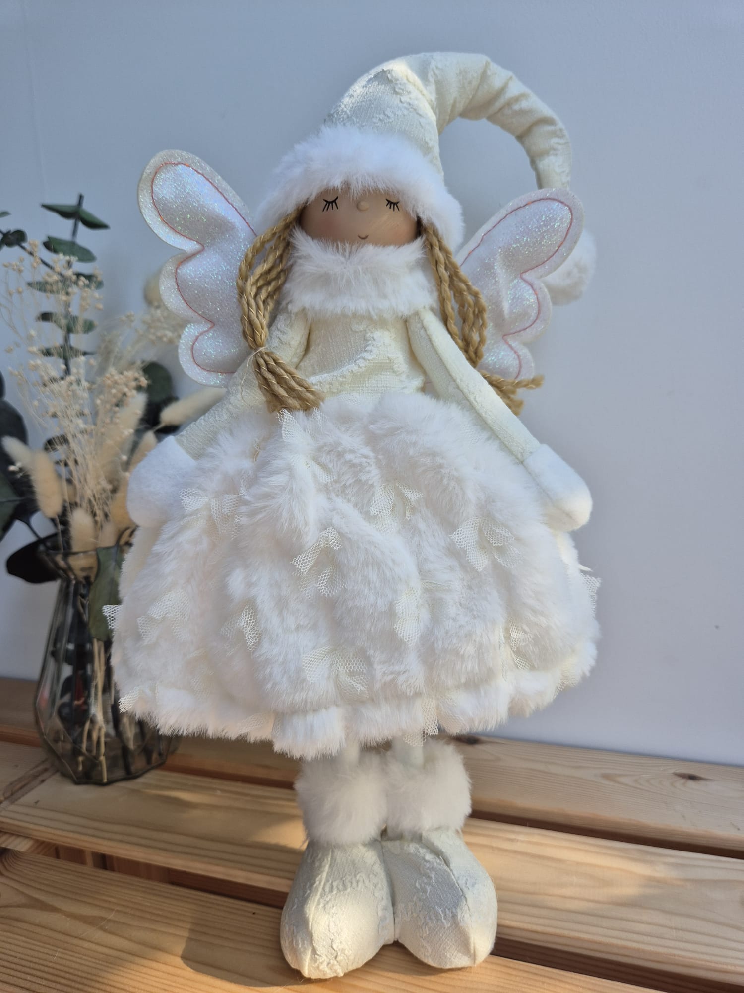 Ce petit ange se tient debout. Ses bras ainsi que son bonnet sont mobiles.