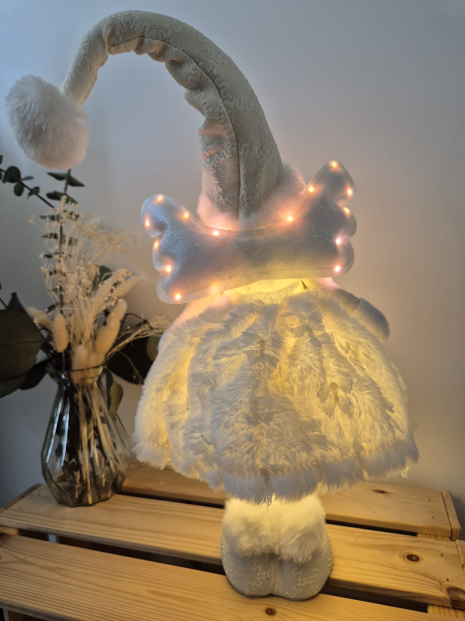 De nuit elle pourra servir de veilleuse puisque sous sa jupe se cache une lampe* qui pourra délicatement illuminer la pièce.