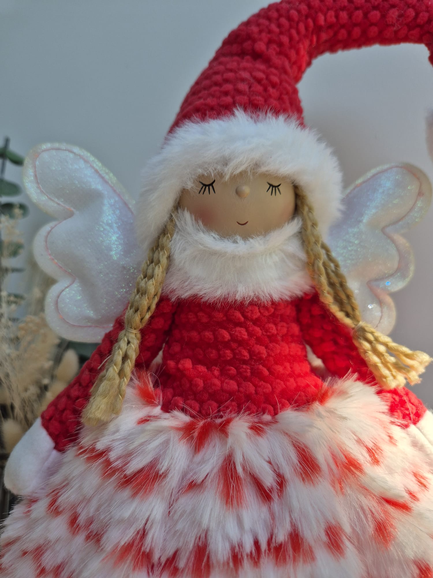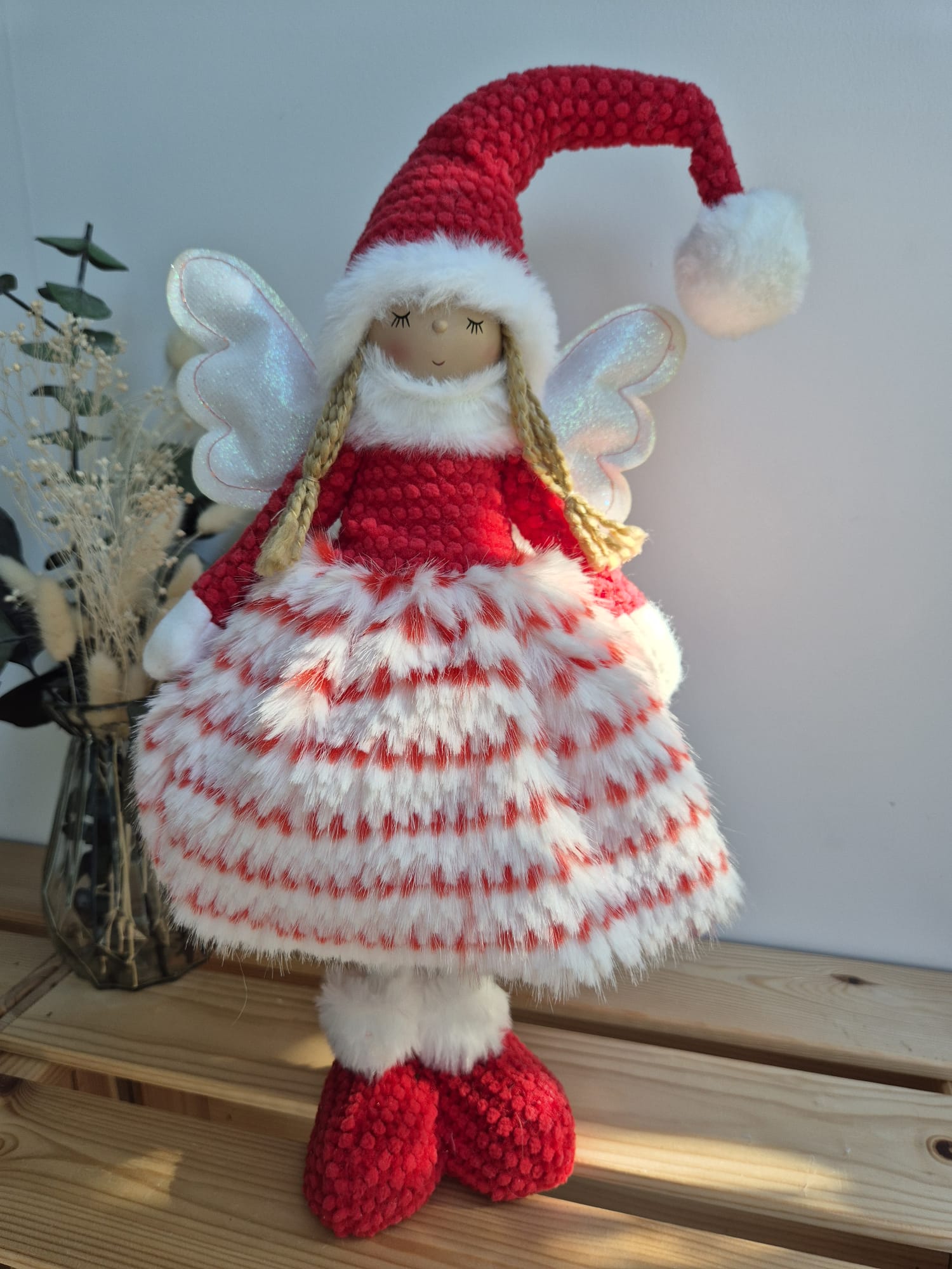 Ce petit ange se tient debout. Ses bras ainsi que son bonnet sont mobiles.